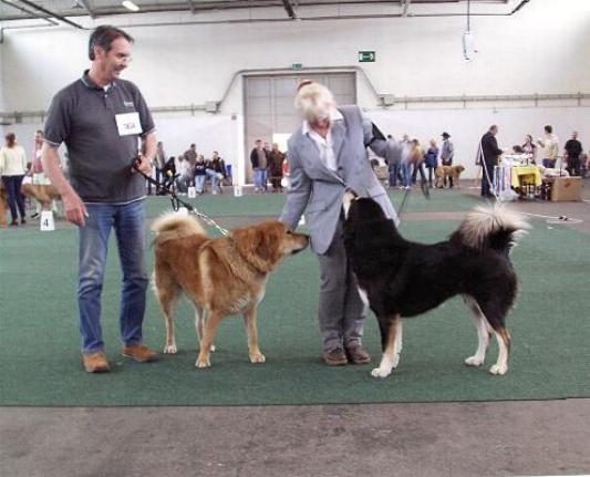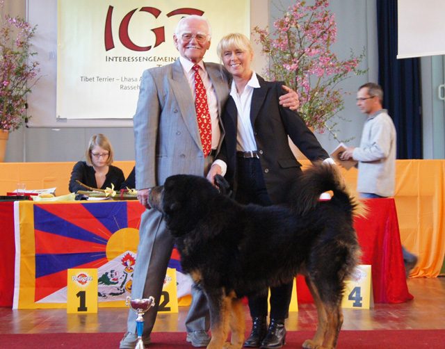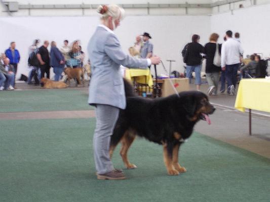 Da NIKKIs VATER mit seinen 11 Jahren immer noch in allerbester Kondition ist, wurde er auch gleich noch BESTER RÜDE der Rasse Do Khyi DANGMO UND ARISTA starteten in der offenen Klasse. ARISTA, die seit der CACIB Kassel mächtig zugelegt hat, entschied diese Runde für sich.Insgesamt waren 8 Hündinnen (Champion, Jugend, Offene) gemeldet, gegen die sich NIKKIS Schwester durchsetzen konnte.