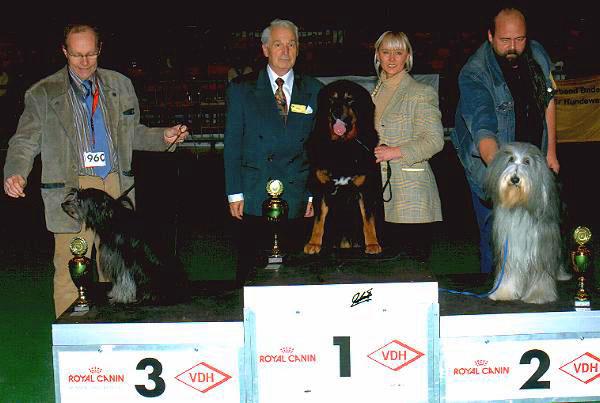 Rotzi wurde dann auch noch bester Veteran der Do Khyi und mußte somit noch in den Ehrenring, wo er gegen all die anderen besten Veteranen der anderen Rassen antrat.
