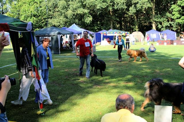 Einige in Deutschland gezüchtete Do Khyi waren natürlich auch mit von der Partie, unter anderem gingen für den FKT e.V. (Förderkreis Tibethunde) Marco Polos King of Tibet Jigme Dorje und Marco Polos King of Tibet Dangmo Gomba - hier vorgeführt von Herrn Peter Tenten - an den Start , die unter anderem nach einstimmigem Urteil der niederlänischen und französischen Richter Platz 1 der Paarklasse belegten!